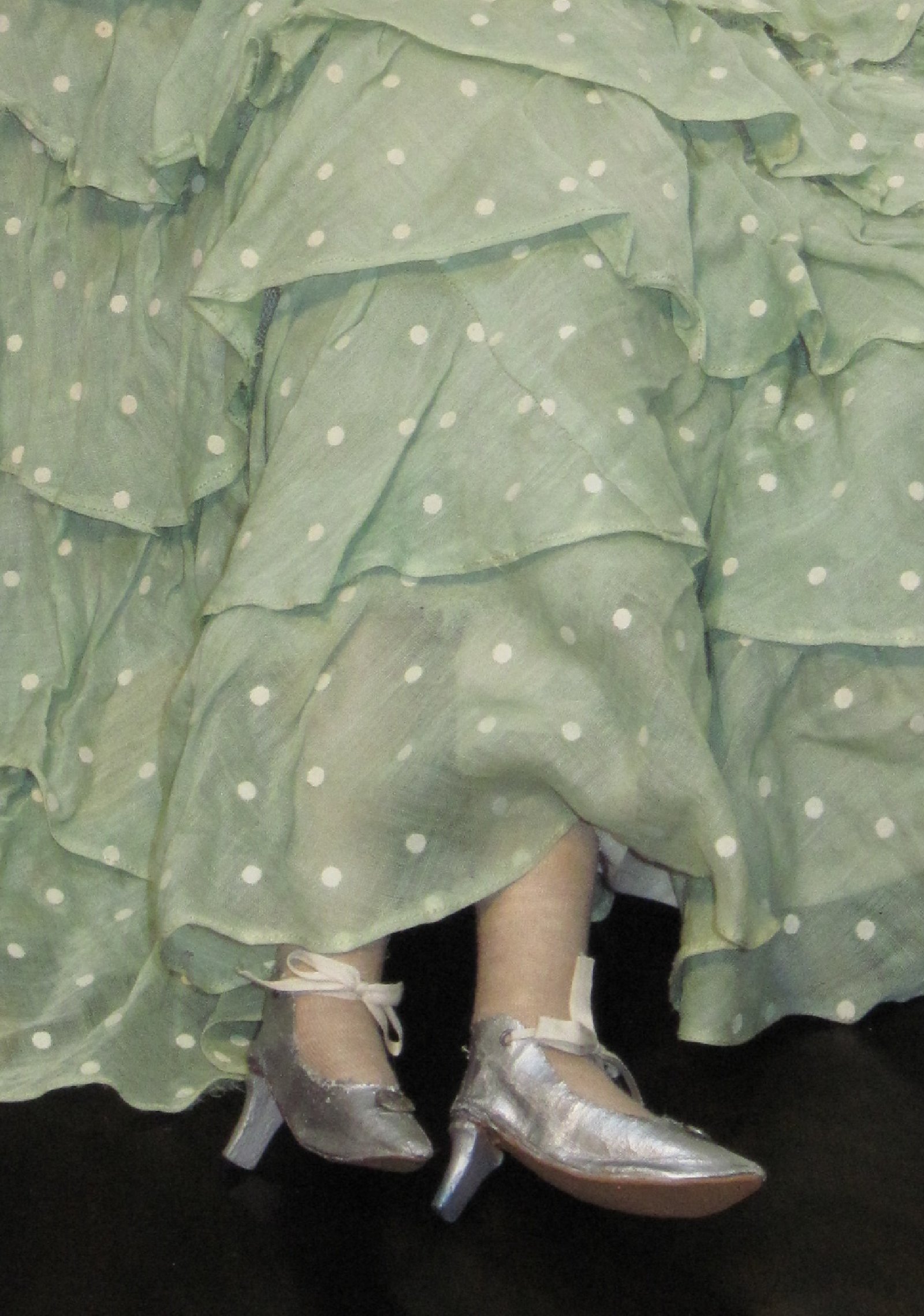 sleeves and skirt. Lace ruffle, belt and hair piece